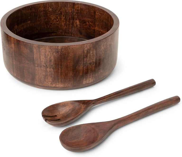 And while winter is still hanging on, spring is very clearly coming. Which means gardens, fresh greens, and optimistic pasta salads. This oversized dark wood salad bowl with matching wooden utensils is perfect for the table — and the wooden utensils mean you’re avoiding microplastics and mystery materials altogether. Practical and pretty.